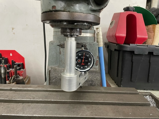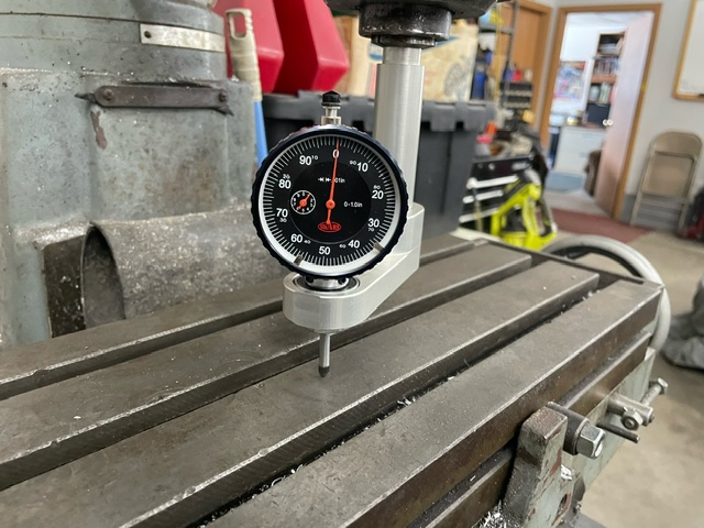 This uses a single indicator, but the indicator face is free to rotate 360 degrees, while the tramming tool is swept, this way you can always see the face. You can angle it at any angle to get a good look at it and preserve steady parallax on the gauge face, allowing for consistent readings. The bearing arrangement to make this work is where the magic happens. Well worth the engineering (albeit simple) needed to make it all cook! No more climbing behind your machine or using mirrors with incorrect parallax. This is simple, quick, and reliable.